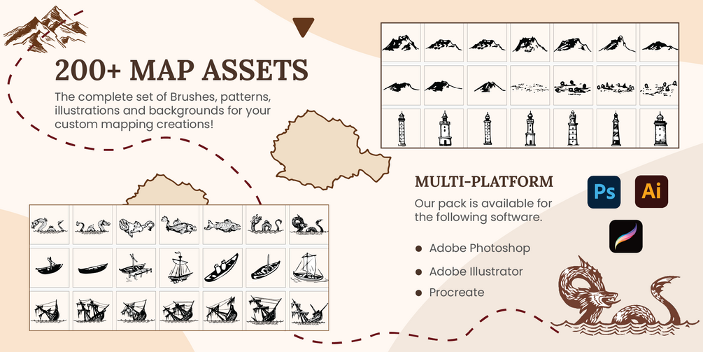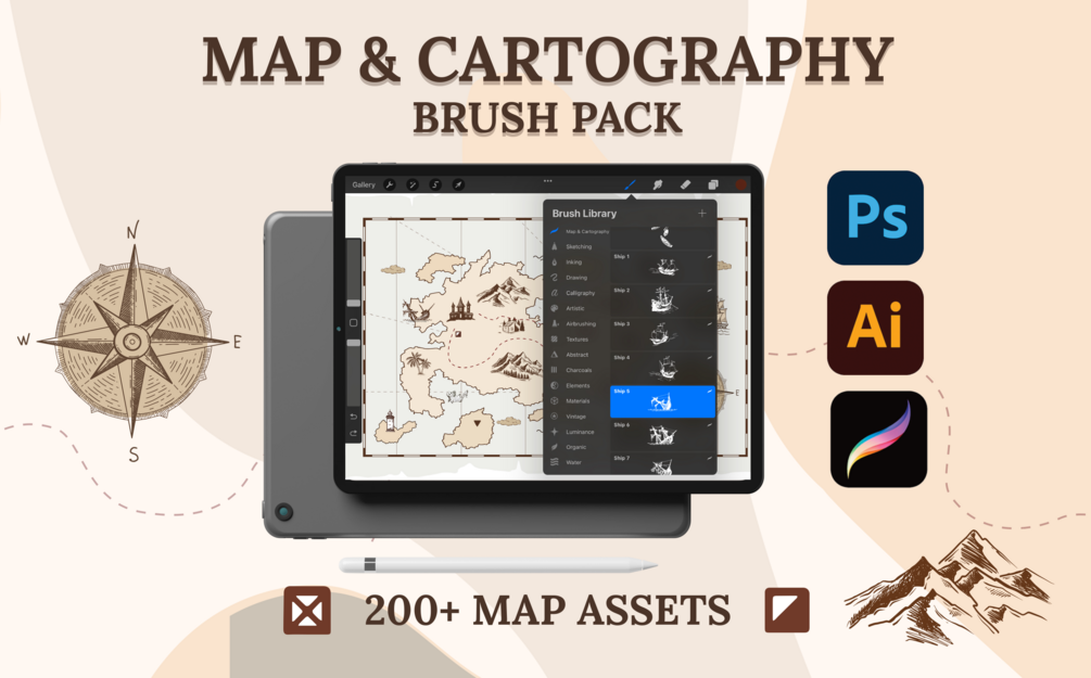 Map and Cartography Pack (Photoshop, Illustrator, Procreate)